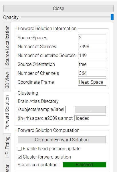 | Please note: If connected to the HPI Fitting plugin, the Forward Solution control widget first appears after the first successful HPI fit.|