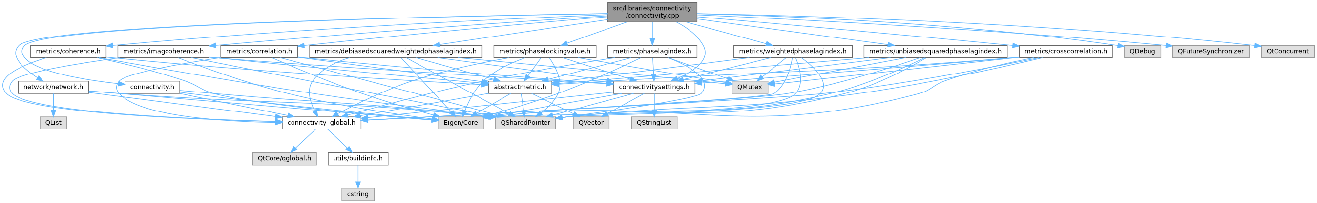 #include "connectivity.h"#include "connectivitysettings.h"#include "network/network.h"#include "metrics/correlation.h"#include "metrics/crosscorrelation.h"#include "metrics/coherence.h"#include "metrics/imagcoherence.h"#include "metrics/phaselagindex.h"#include "metrics/phaselockingvalue.h"#include "metrics/weightedphaselagindex.h"#include "metrics/unbiasedsquaredphaselagindex.h"#include "metrics/debiasedsquaredweightedphaselagindex.h"#include <QDebug>#include <QFutureSynchronizer>#include <QtConcurrent>